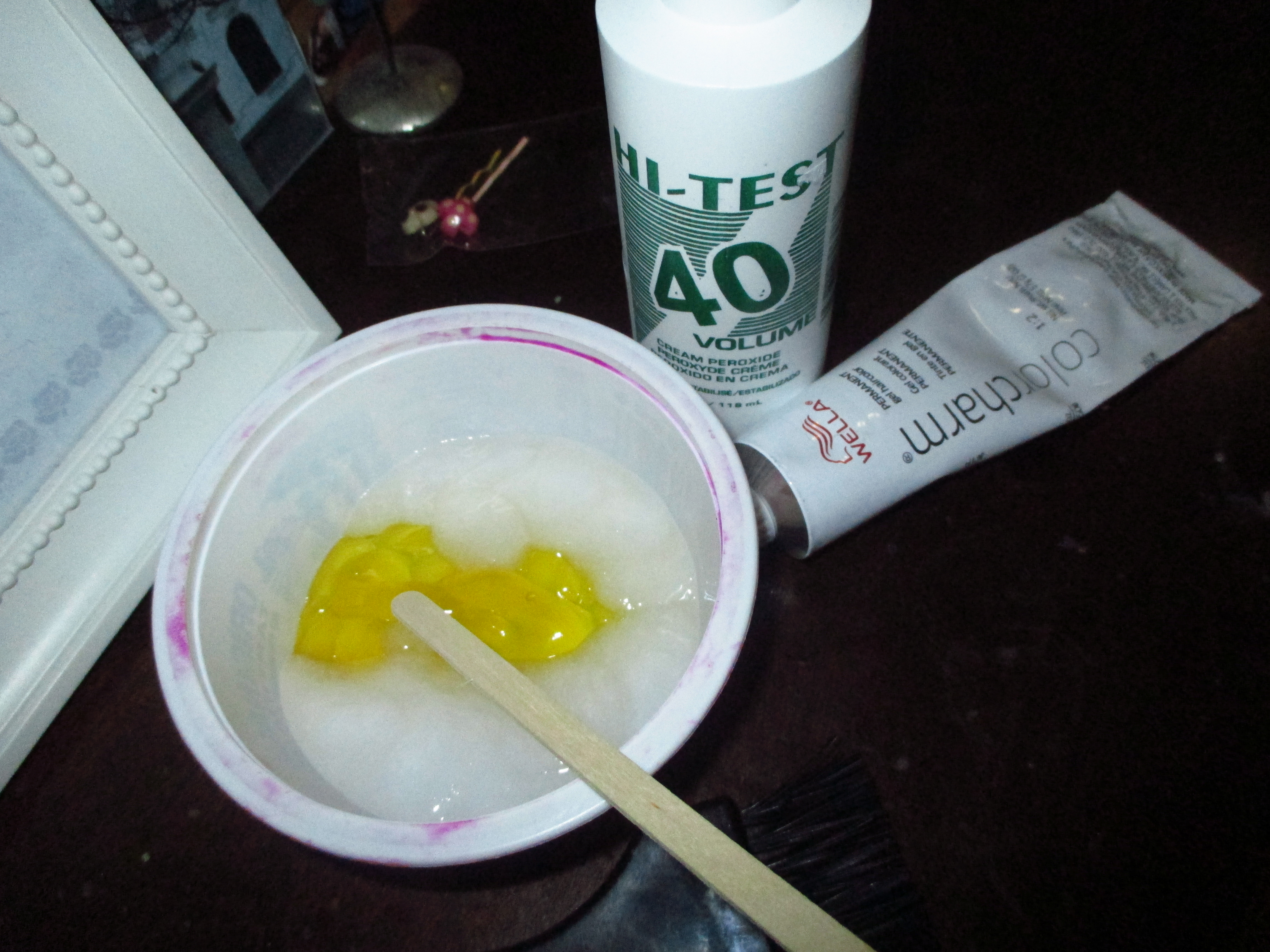 This is what you will need to lighten and tone. Don’t forget gloves!