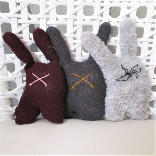 Ever wanted to have a cute plush toy made from things you didn’t think could be cute?  Enter these old gloves I had lying around my house that were not pretty enough to be worn in the winter, or too mismatched from losing the other pair over various winters.  I decided to make stuffed bunnies out of them for Easter. I cut off the thumb, the pinky, and middle finger, leaving just two finger for ears.  Then I sewed up all the holes, and added some leg shapes by cutting a slit at the bottom of the glove for where they would be.  I stuffed the gloves, and added whiskers and a ball tail.  And now I have the cutest stuffed bunnies this side of the world!  I am selling these on Etsy, so if you want one, just make an enquiry!