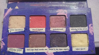 This is the “I’m with the band” palette by Essence makeup. See the red shadow in the middle top row? That’s the one to use for a sad makeup look.