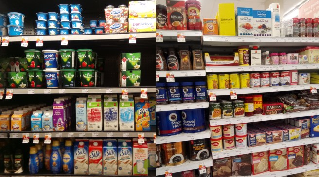 So here is the food isle at my local drugmart: I have been known to use many food grade items for cosmetic purposes: sugar, honey, yogurt, olive oil, coconut oil, cornstartch…etc. just to name a few…