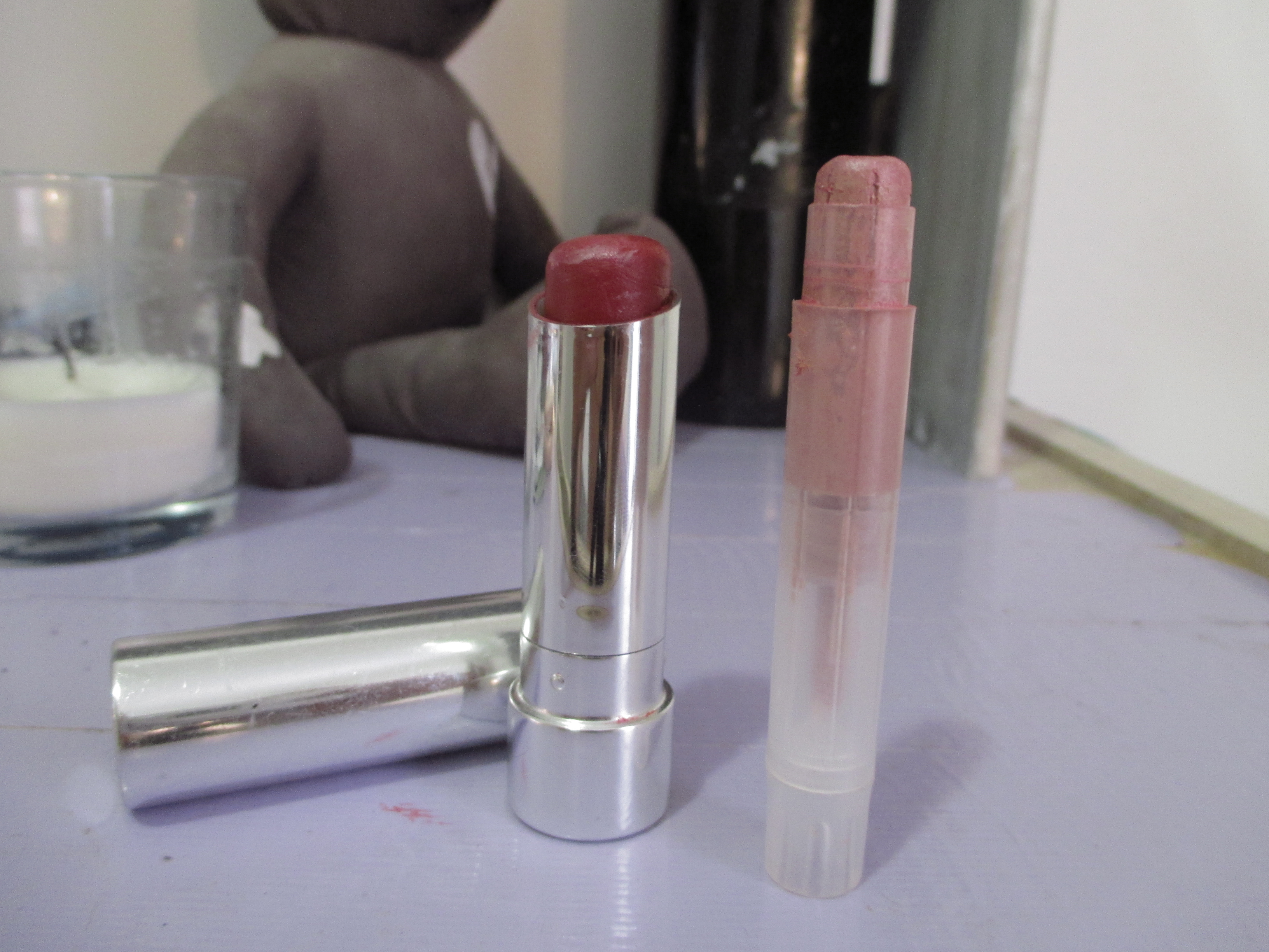 You need two lip colours to do this. Make sure they contrast each other enough. The main point of this trend is nude coloured lips, with a gradient dab of bright colour in the center.Come close for a kiss! ha ha. This is how it looked on me. I don’t know if you can see it. But it is indeed two toned, with the red in the center, fading out to nudey pink on the edges. Like?
